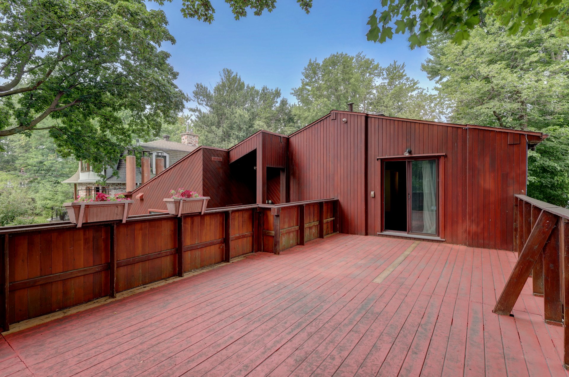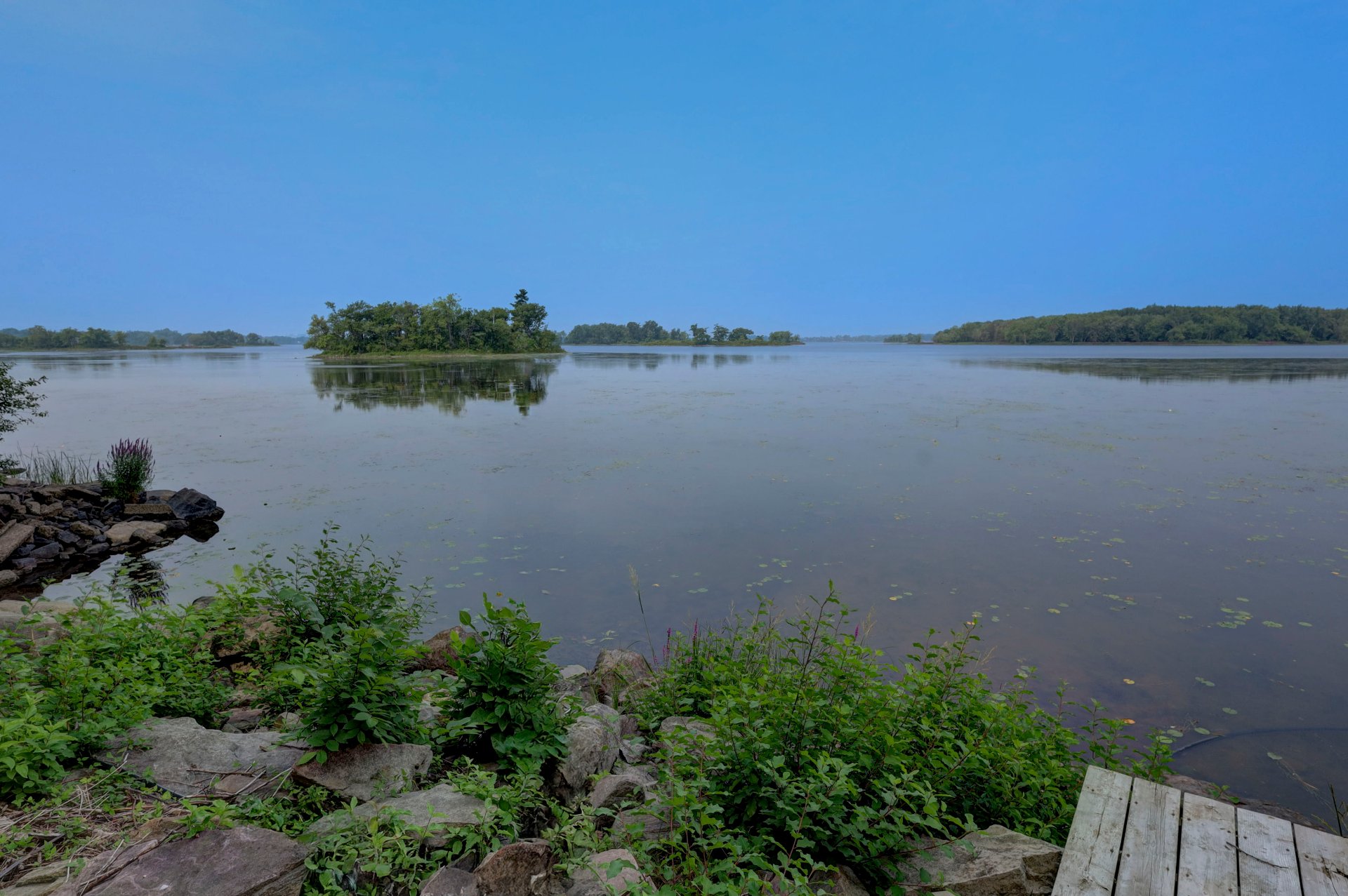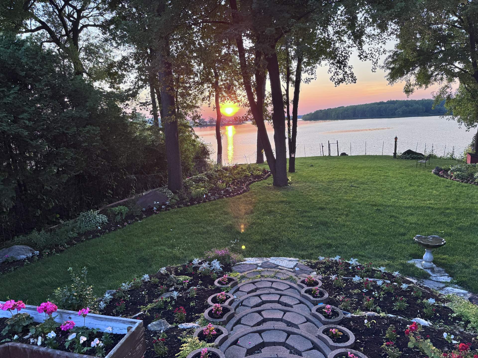 Des portes doubles du salon et du bureau s'ouvrent sur un jardin paysager minutieusement entretenu, avec une terrasse en bois de 27'x16' et un patio en pierres de rivière au niveau inférieur. La propriété inclut également un système d'irrigation unique qui puise son eau directement du lac.