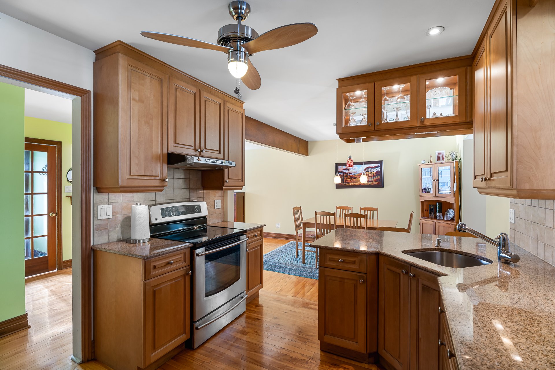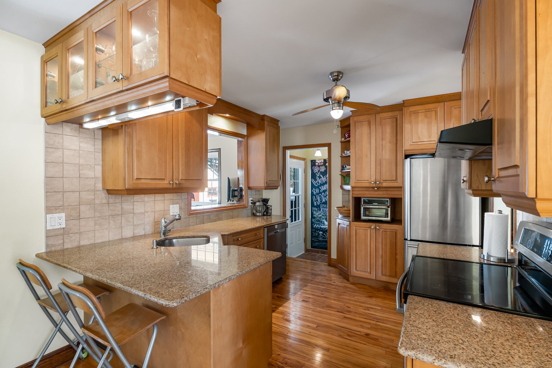 Spacieux bungalow 3+1 chambres situé dans le secteur recherché de Beaconsfield. La propriété offre une lumineuse salle familiale agrandie avec de nombreuses fenêtres, un foyer au propane et une porte donnant accès à la cour arrière avec grande terrasse et patio distinct. Cuisine rénovée avec comptoirs en granit, planchers de bois franc et chauffage à air pulsé. Sous-sol aménagé avec salle de jeux, chambre, deuxième salle de bain et espace de rangement. Toiture refaite en 2016. Stationnement abondant avec deux entrées, garage et abri d'auto. À distance de marche de tous les services.