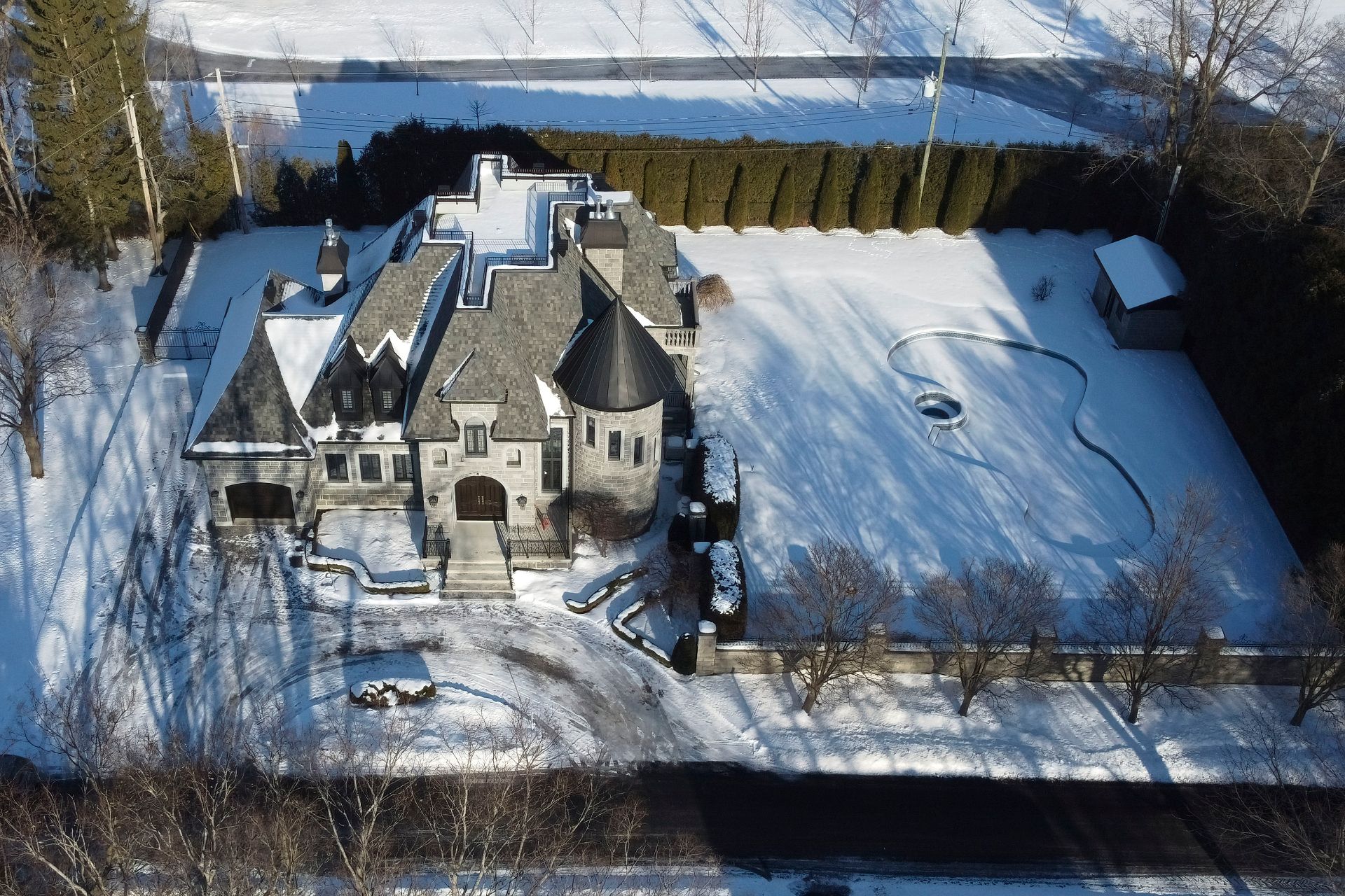 Maison exceptionnelle offrant un excellent rapport qualité-prix, entièrement rénovée par un propriétaire soucieux de la qualité. Elle comprend un vaste salon avec foyer en calcaire, une cuisine gastronomique avec office de majordome, quatre foyers, une salle de cinéma avec chauffage indépendant, une suite principale de style retraite avec balcon et vue sur la piscine creusée. Sous-sol entièrement aménagé avec quatrième foyer. Propriété de grande valeur - voir l'addenda pour les détails. Options disponibles en supplément : garage double détaché et pavé uni autour de la piscine et de l'entrée.