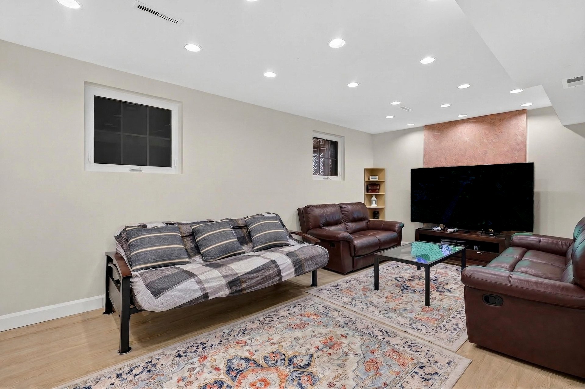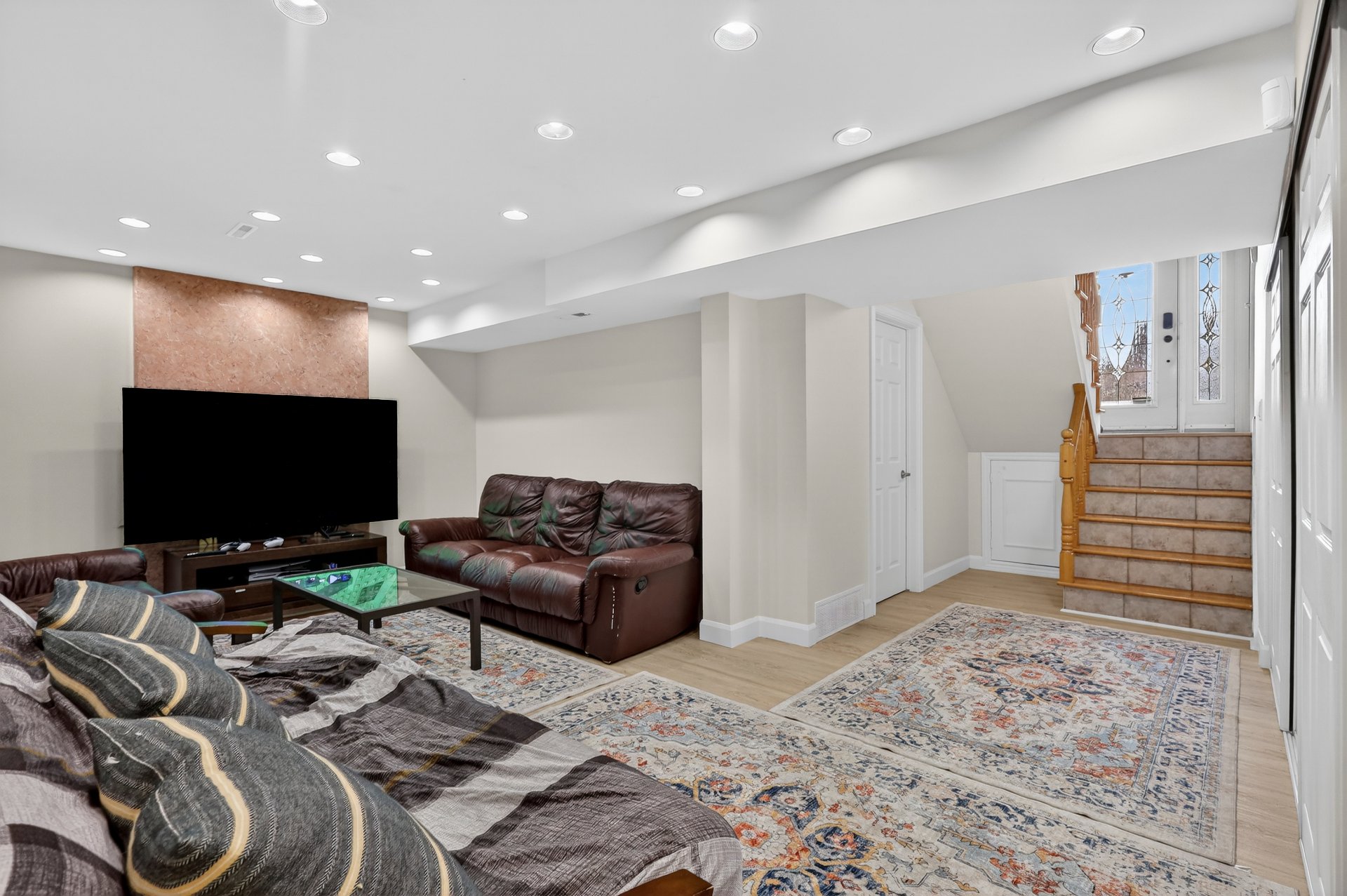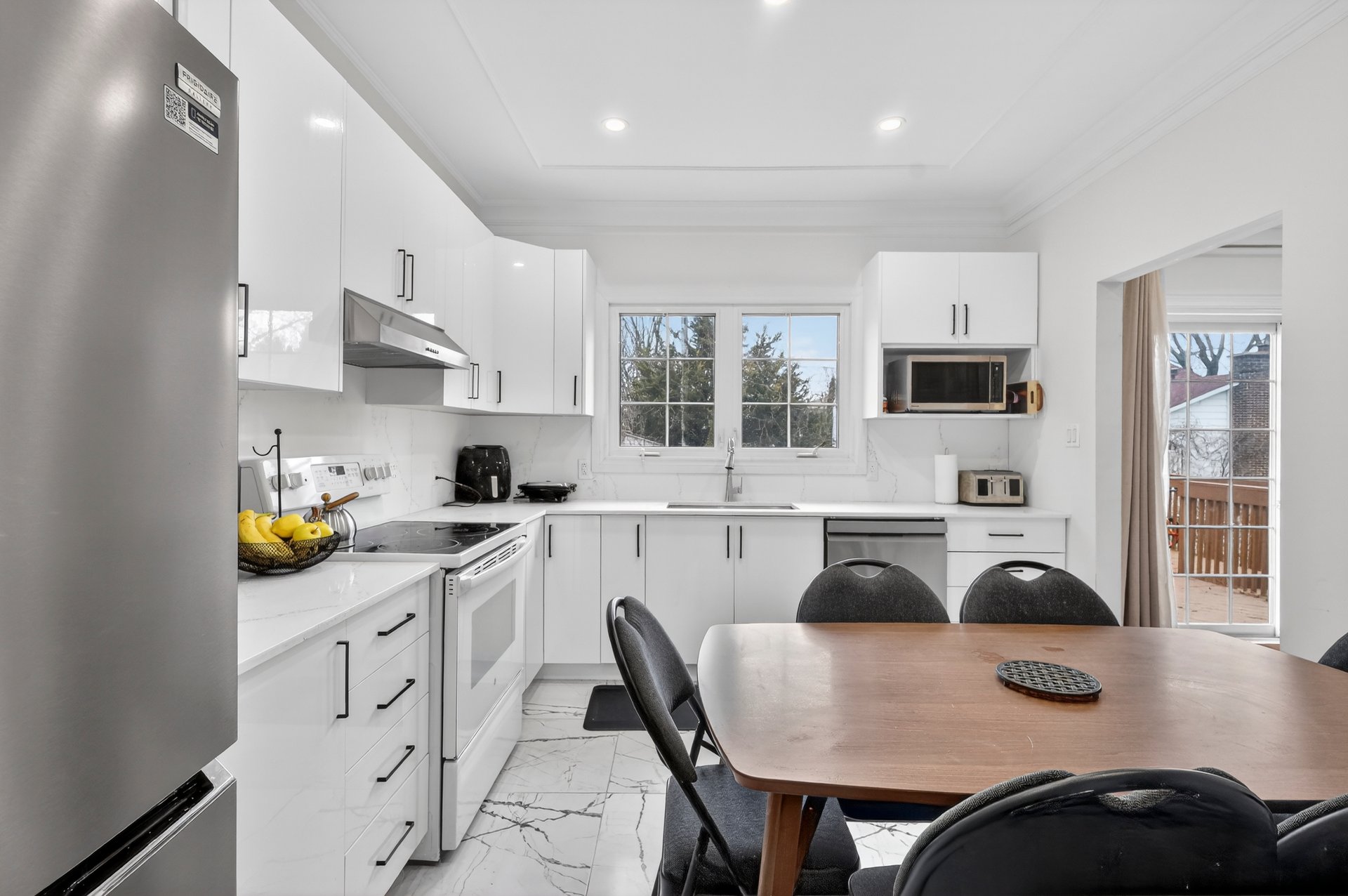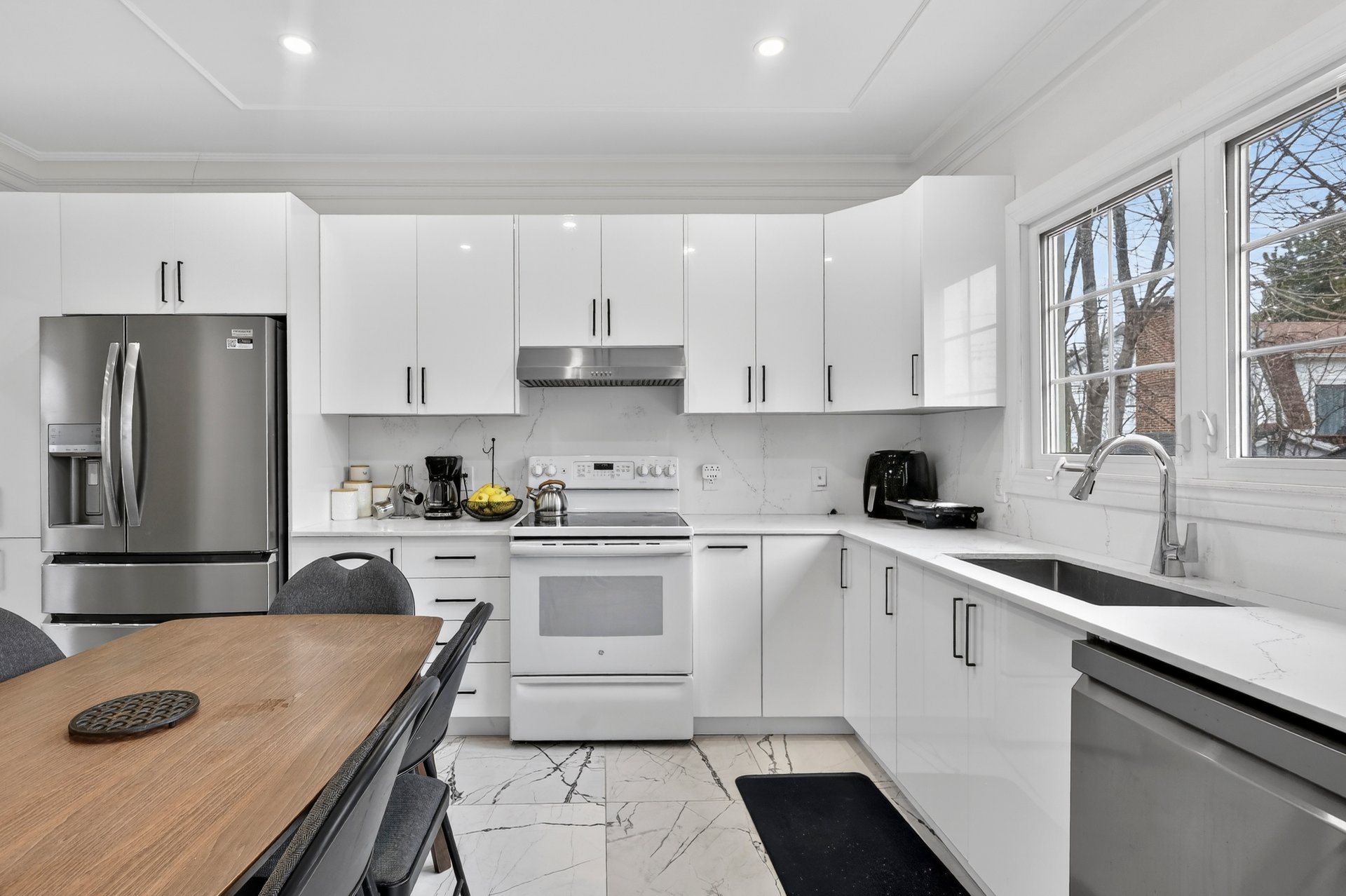 Plain-pied clé en main offrant un vaste salon et salle à manger à aire ouverte avec plafonds hauts et éclairage encastré. La salle à manger donne accès par porte patio à une grande terrasse surplombant la piscine et la cour. Cuisine design rénovée avec comptoirs et dosseret en quartz. Spacieuse chambre principale avec salle de bains attenante rénovée. Sous-sol aménagé avec grande salle familiale et chambre supplémentaire. Nombreuses améliorations : fournaise, thermopompe, cuisine, salles de bains et panneau électrique. Emplacement central, à distance de marche des synagogues et du parc Centennial. Une occasion de bien débuter!