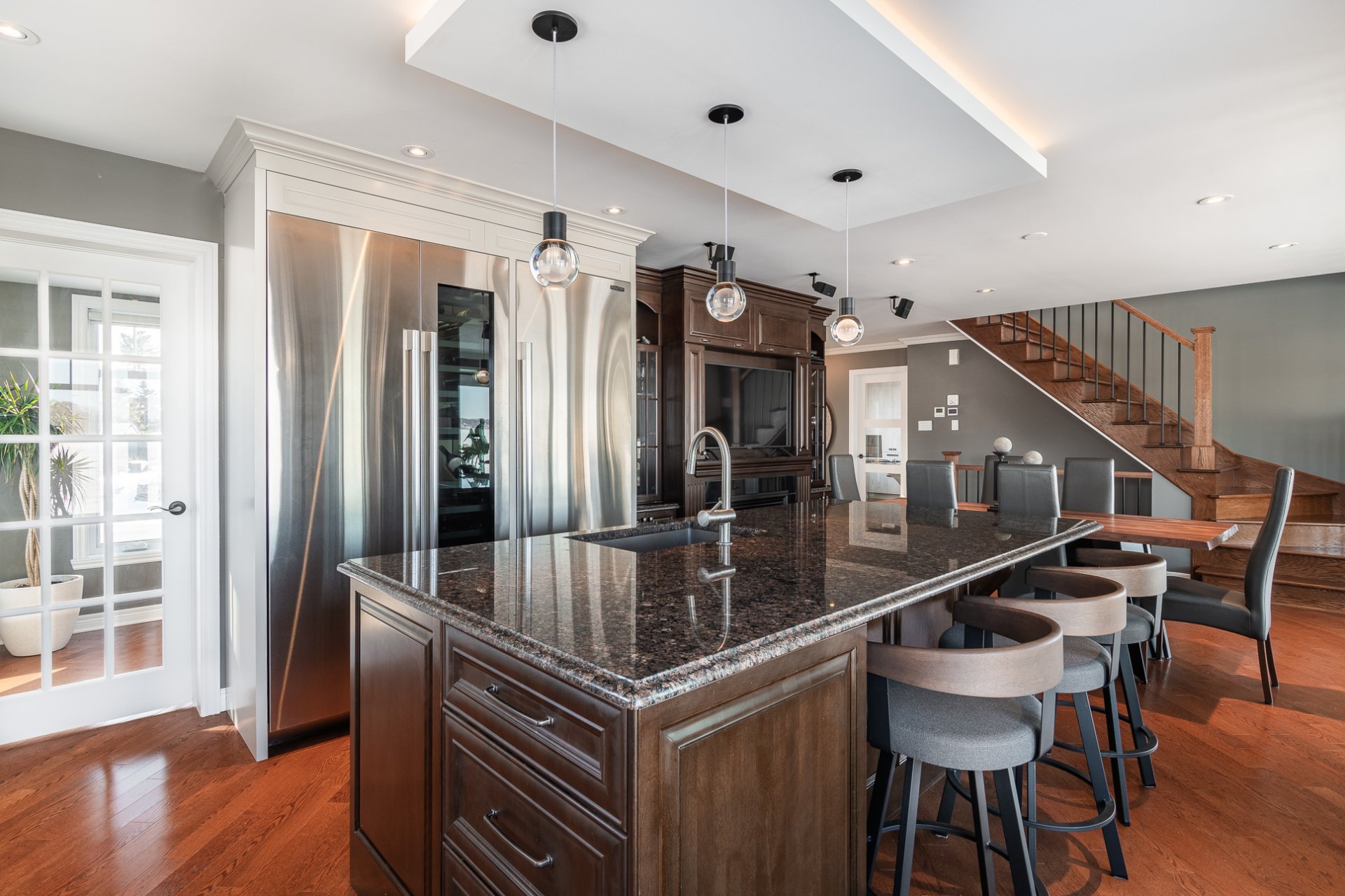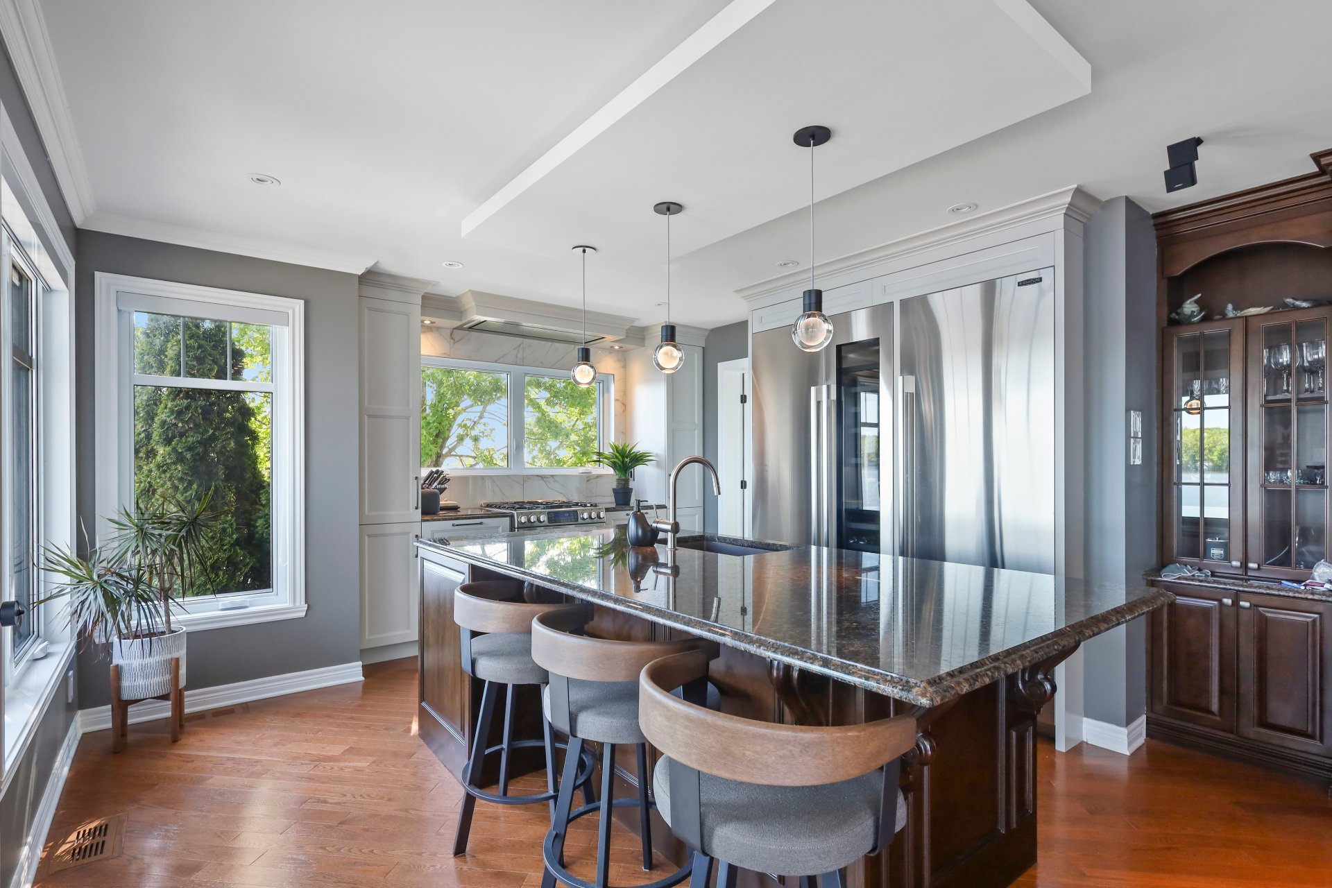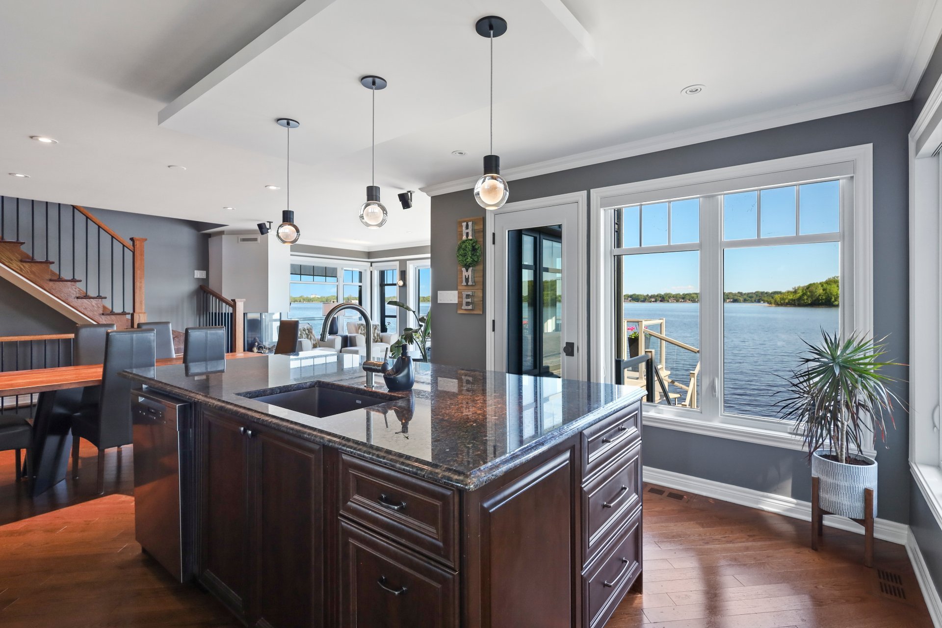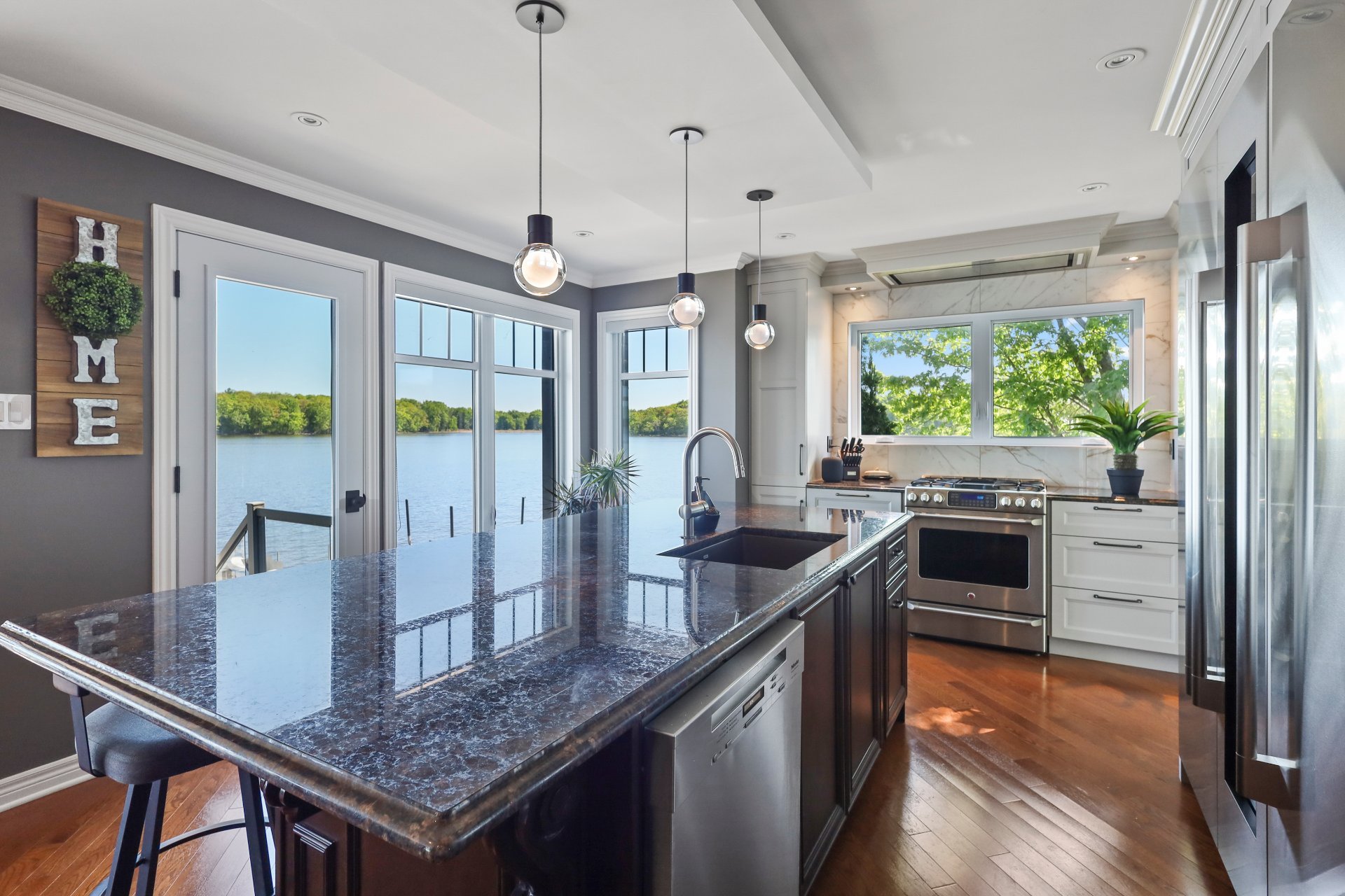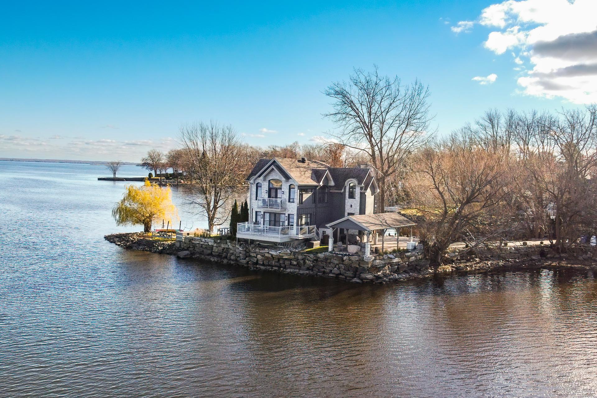Vivez une expérience unique au bord de l'eau, sur une péninsule privée avec vue à 360 degrés sur le lac Saint-Louis. Accédez à la propriété via une entrée sécurisée et une allée en pavé uni. Cette maison exceptionnelle offre trois foyers, un rez-de-chaussée à aire ouverte avec vues imprenables, une cuisine de chef avec comptoirs en granit avec garde-manger walk-in et un bureau qui pourrait être transformé en une troisième chambre. La chambre principale comprend des murs vitrés, des plafonds de 10 pieds et un walk-in spacieux. Construite en 2008 et rénovée en 2021, ce bien rare ne restera pas longtemps sur le marché !