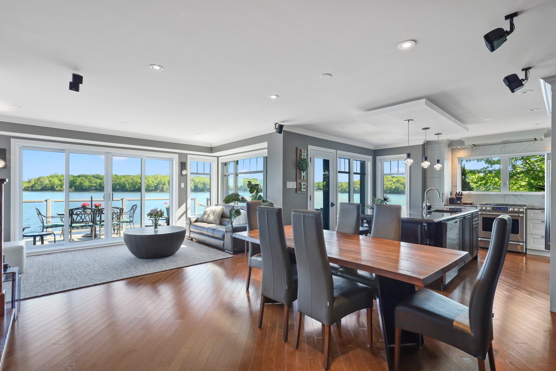 Bienvenue au 39 Thomas-Dennis N.D.I.P, une propriété véritablement exceptionnelle située au bout d'un cul-de-sac tranquille avec une entrée sécurisée. Cette propriété navigable unique se trouve sur sa propre péninsule, offrant des vues imprenables à 360 degrés sur le lac Saint-Louis et l'île Dowker.