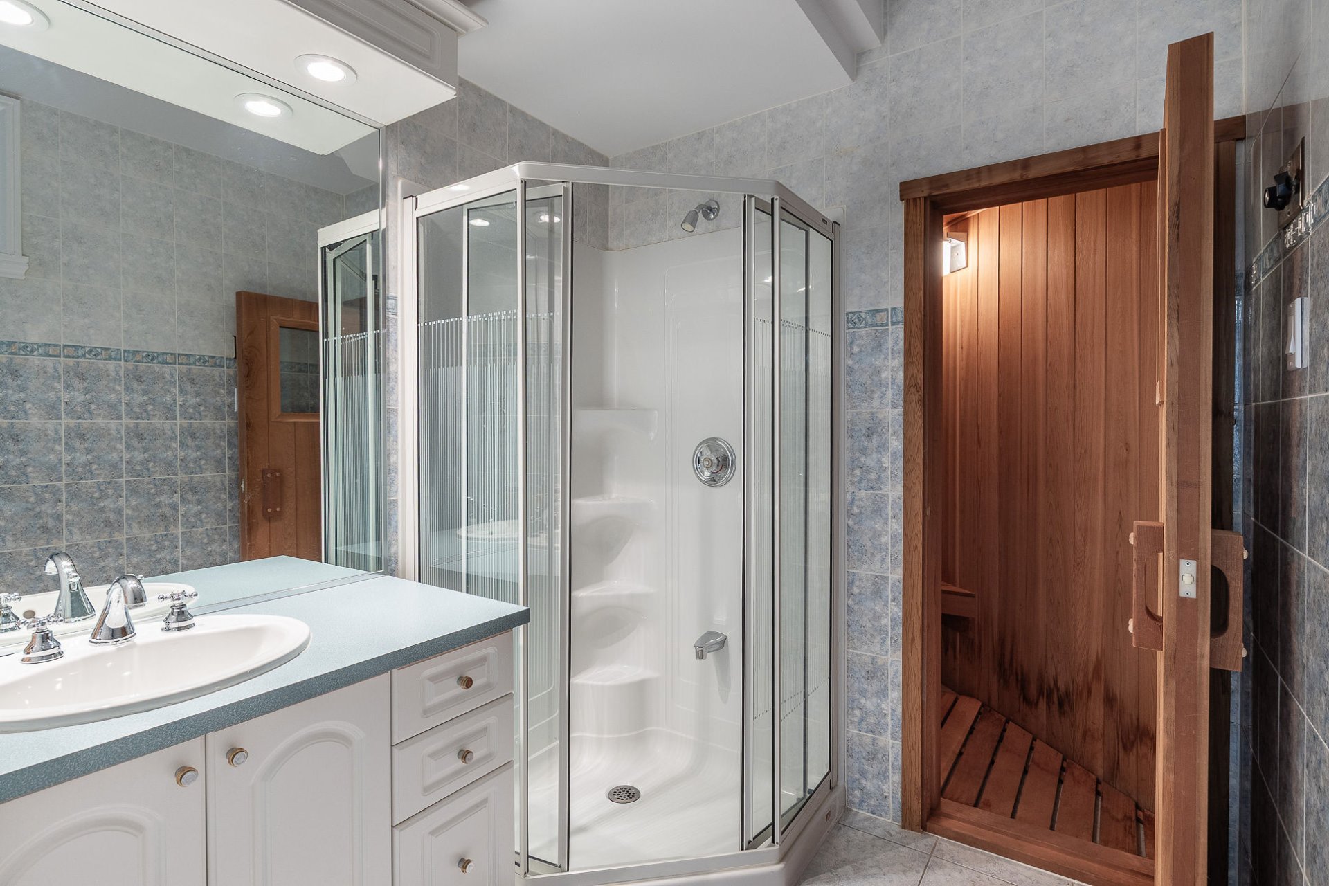Le sous-sol entièrement aménagé, accessible à la fois depuis la maison principale et par un escalier secondaire depuis le garage, offre un espace parfait pour les adolescents, les invités ou un usage multigénérationnel. Ce niveau comprend des plafonds hauts, deux chambres, deux salles de bains (dont un sauna sec), une grande salle de jeux, un espace billard, un bar humide et une salle de sport.