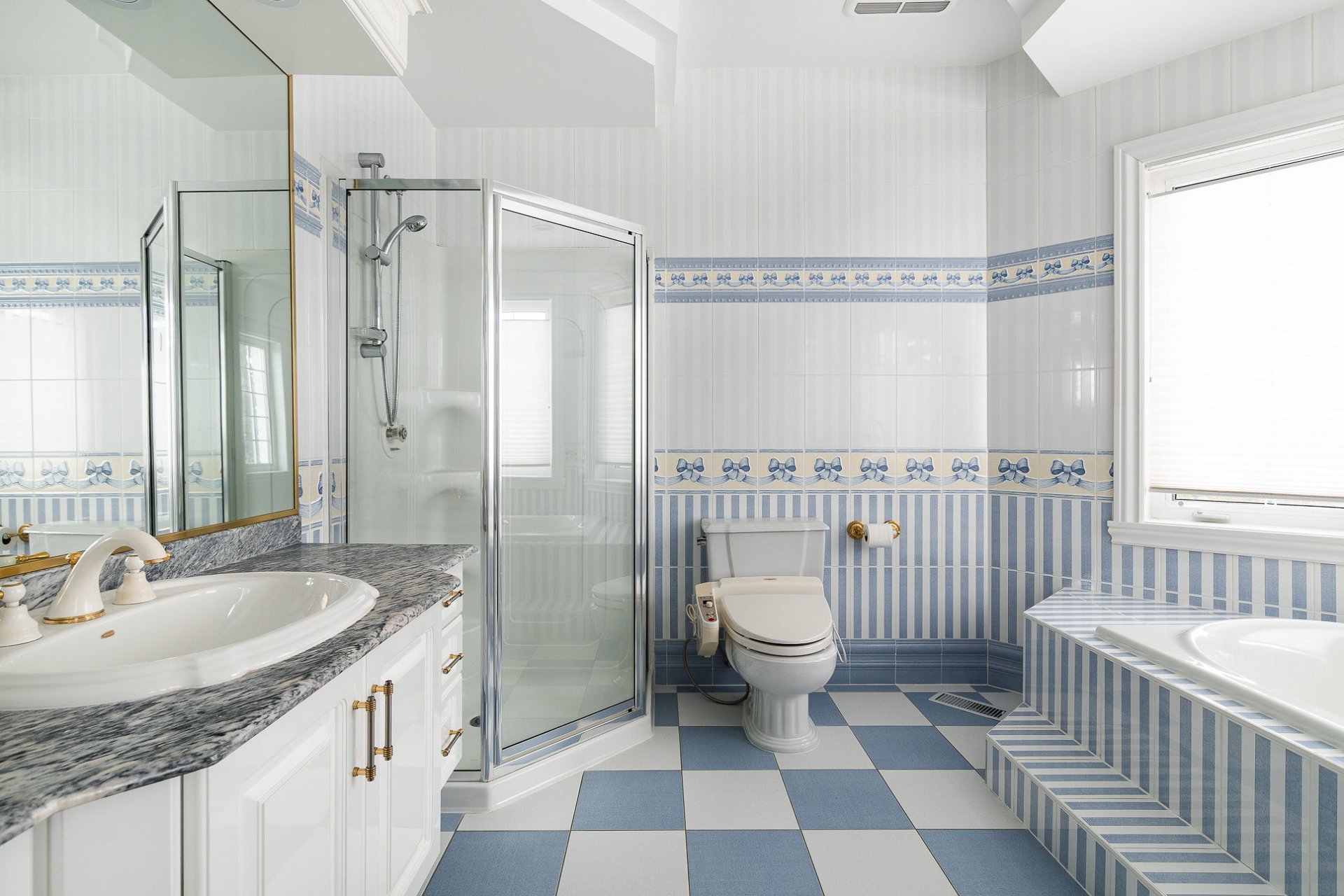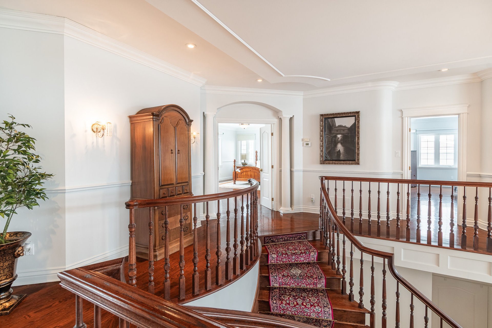 À l'étage, un grand escalier central mène à quatre chambres spacieuses et trois salles de bains complètes. La suite principale de style retraite comprend un vaste walk-in (11x8.8) et une salle de bain attenante luxueuse avec des planchers et comptoirs en marbre, une baignoire jacuzzi double et une cabine de douche séparée.
