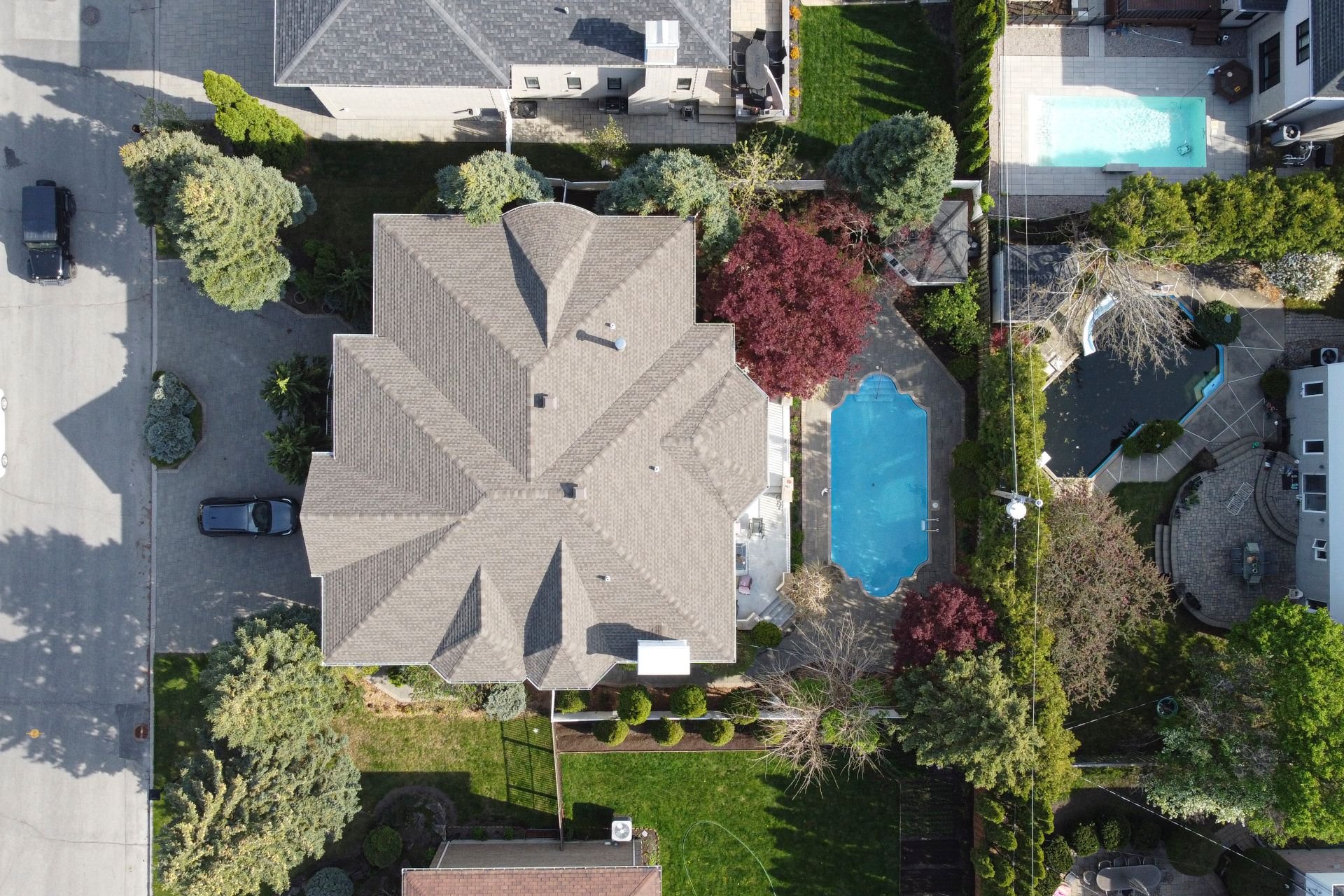 La cour arrière orientée à l'ouest est idéale pour les réceptions en plein air, avec une piscine creusée chauffée à l'eau salée, des zones pavées et un spacieux balcon. Cette maison allie parfaitement luxe, fonctionnalité et confort, en faisant une véritable oeuvre d'art.