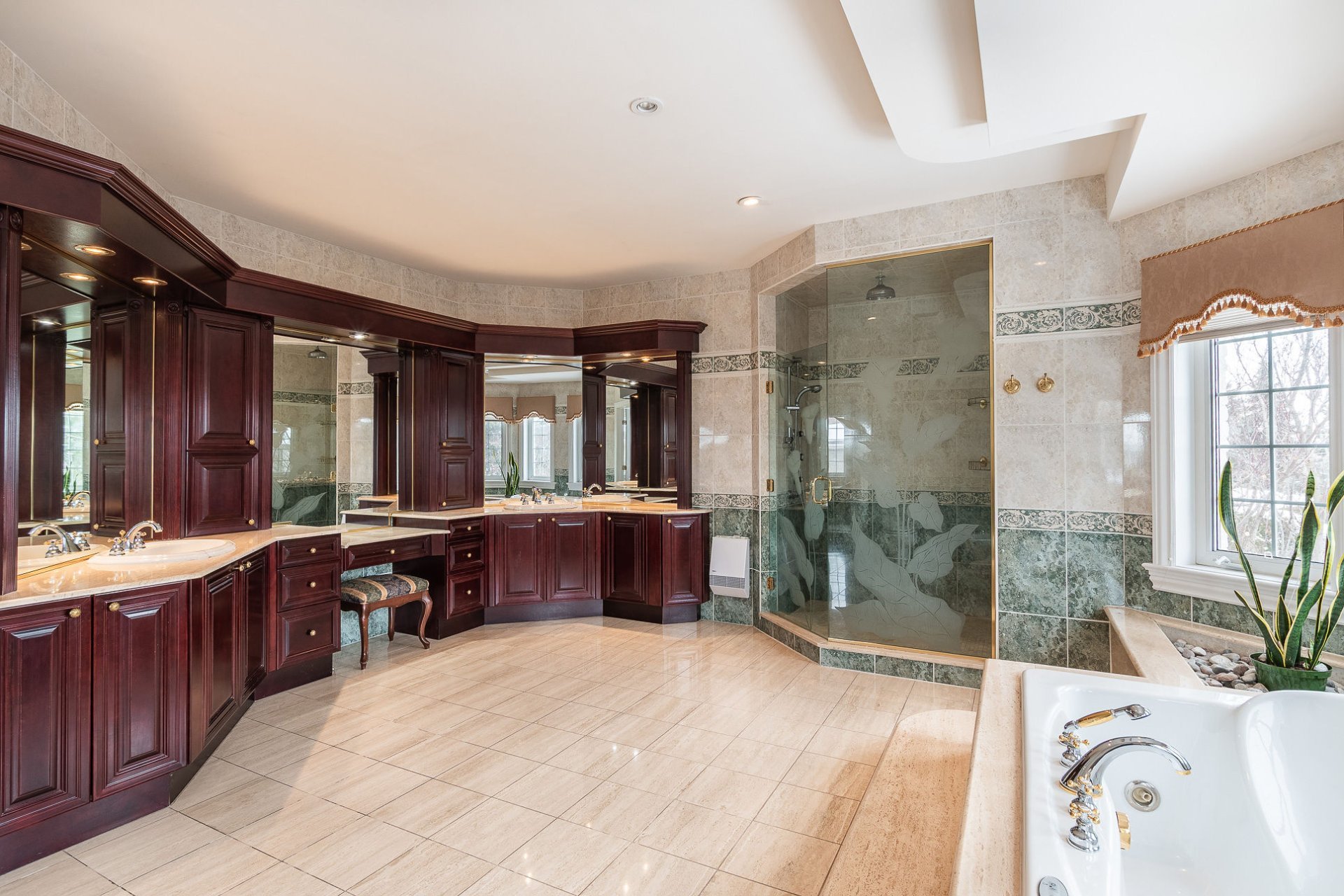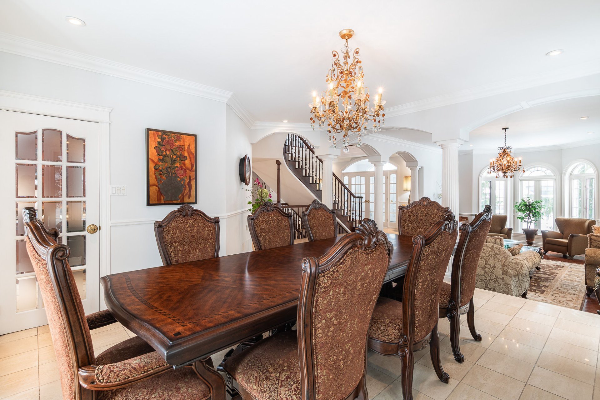 Superbe propriété en brique de grande dimension, située dans un cul-de-sac paisible. Conçue pour les acheteurs exigeants, elle offre un élégant escalier central, des planchers en chevrons au salon et à la salle familiale, ainsi qu'un bureau au rez-de-chaussée. La cuisine spacieuse s'ouvre sur la dinette avec accès à la terrasse et vue sur la piscine. À l'étage : quatre chambres, dont une suite principale de style retraite, trois salles de bain complètes et une seconde salle familiale convertible en cinquième chambre. Le sous-sol à hauts plafonds est idéal pour une vie intergénérationnelle avec chambres, salles de bain, sauna et espaces de vie