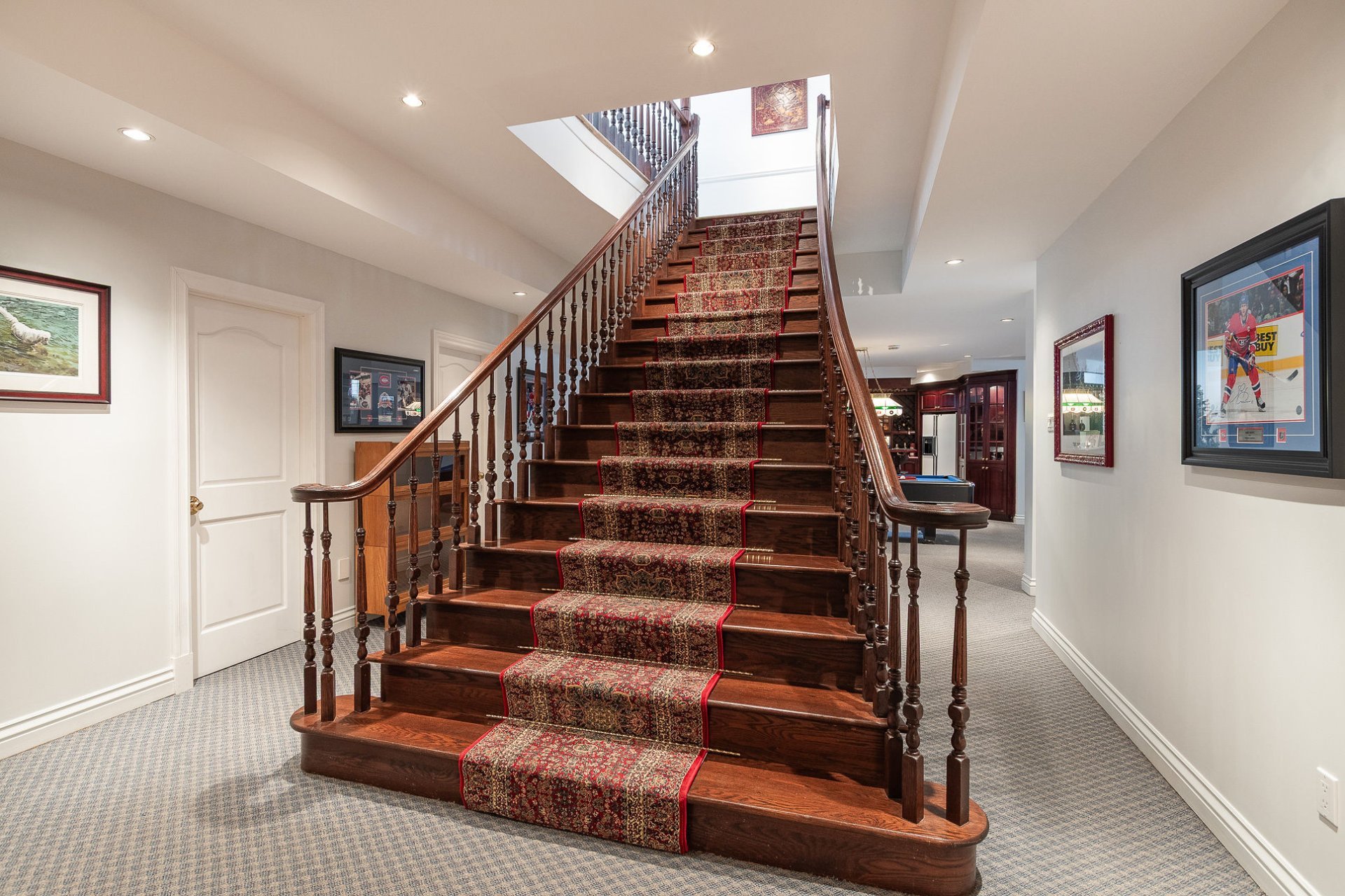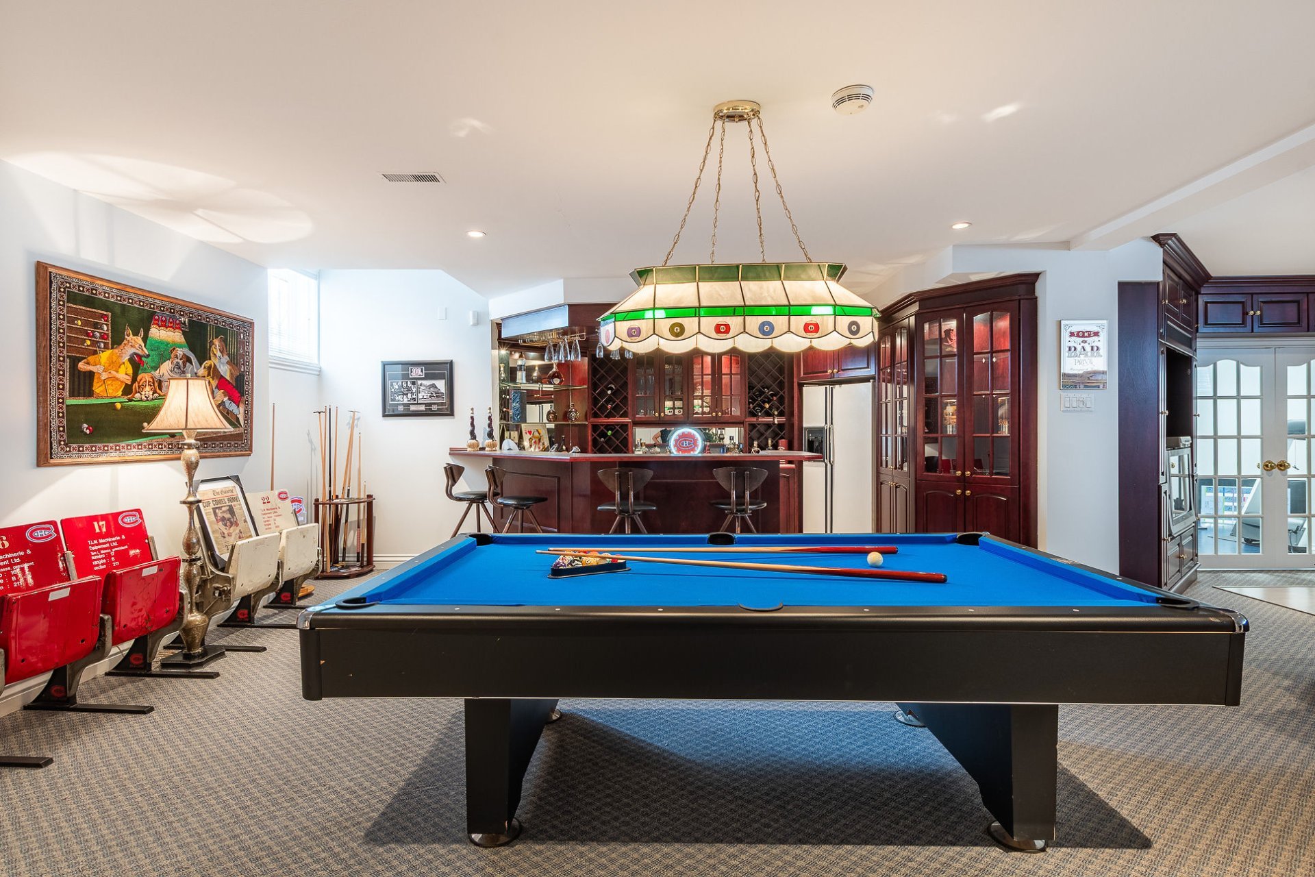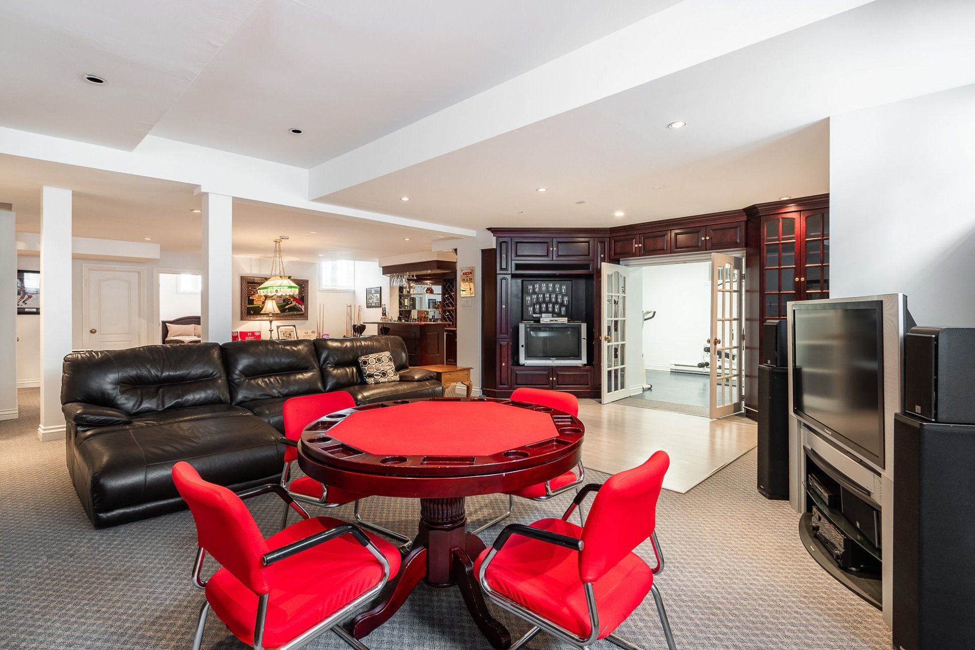 Le sous-sol entièrement aménagé, accessible à la fois depuis la maison principale et par un escalier secondaire depuis le garage, offre un espace parfait pour les adolescents, les invités ou un usage multigénérationnel. Ce niveau comprend des plafonds hauts, deux chambres, deux salles de bains (dont un sauna sec), une grande salle de jeux, un espace billard, un bar humide et une salle de sport.