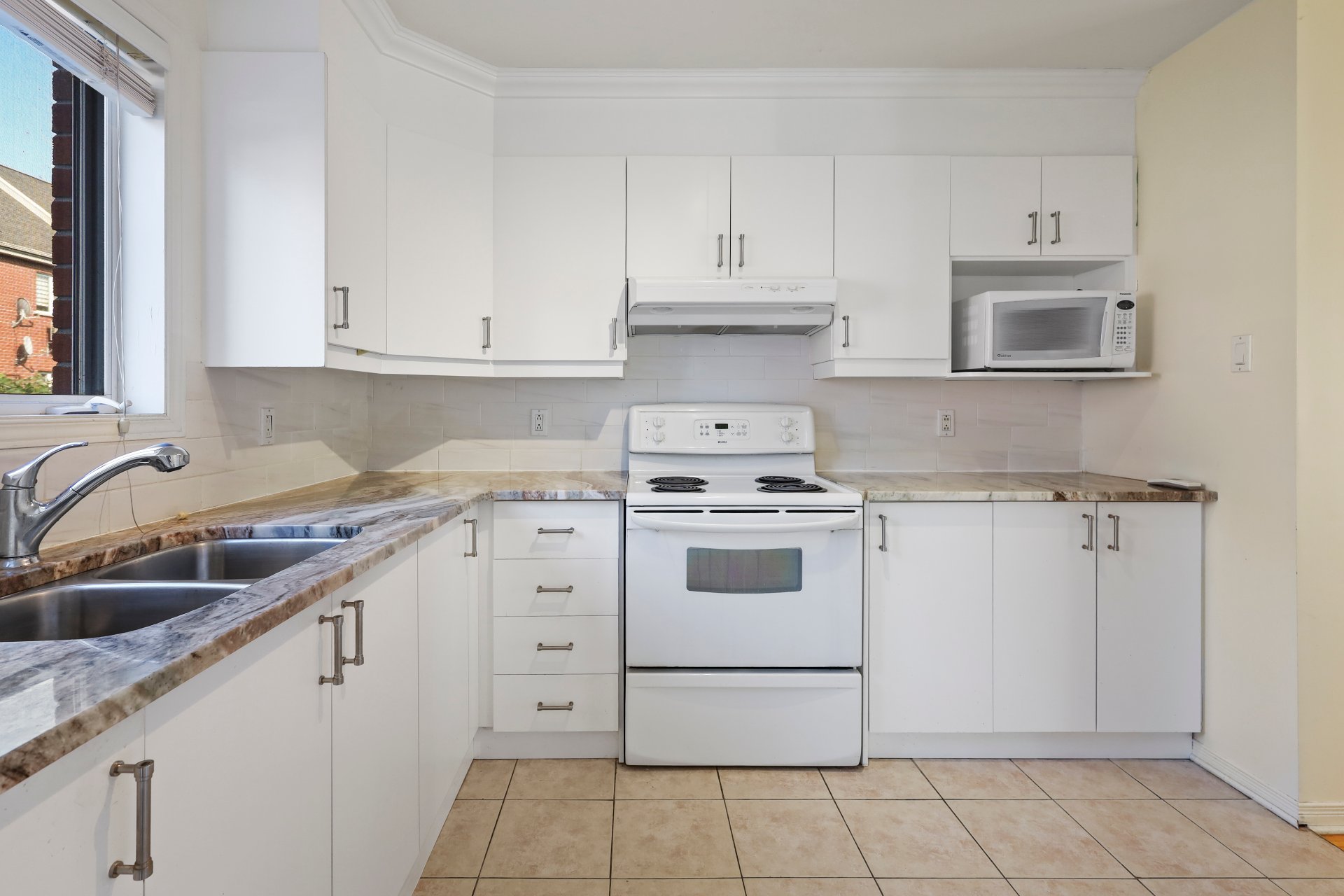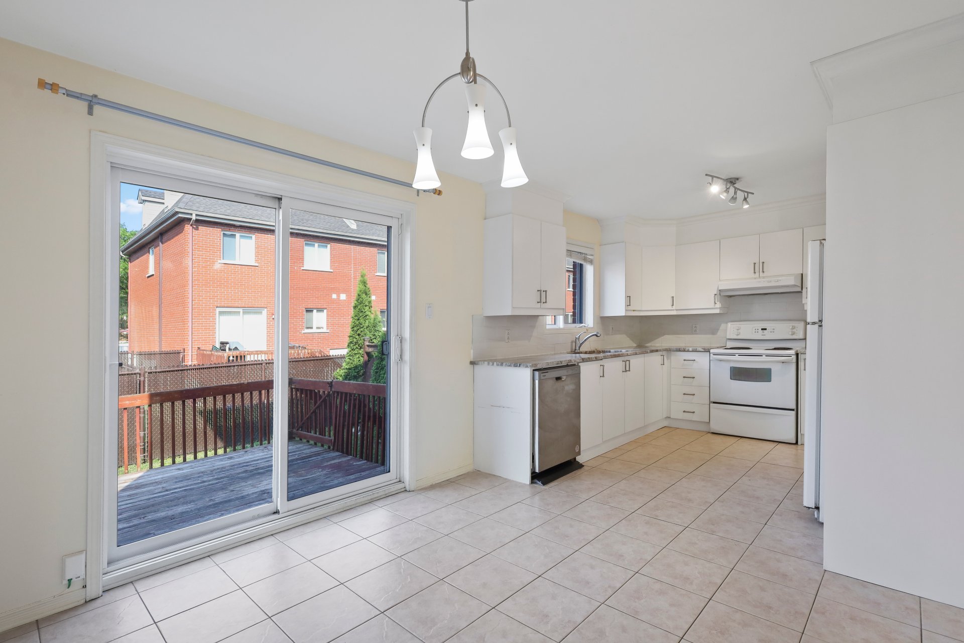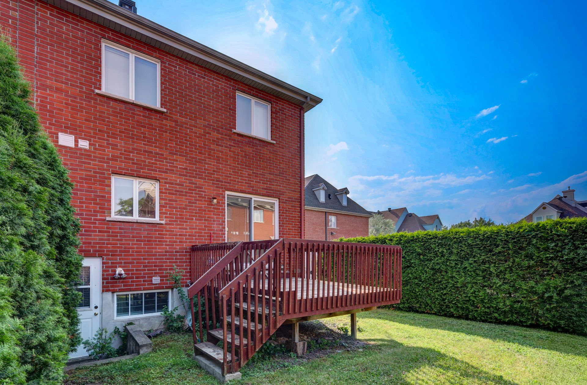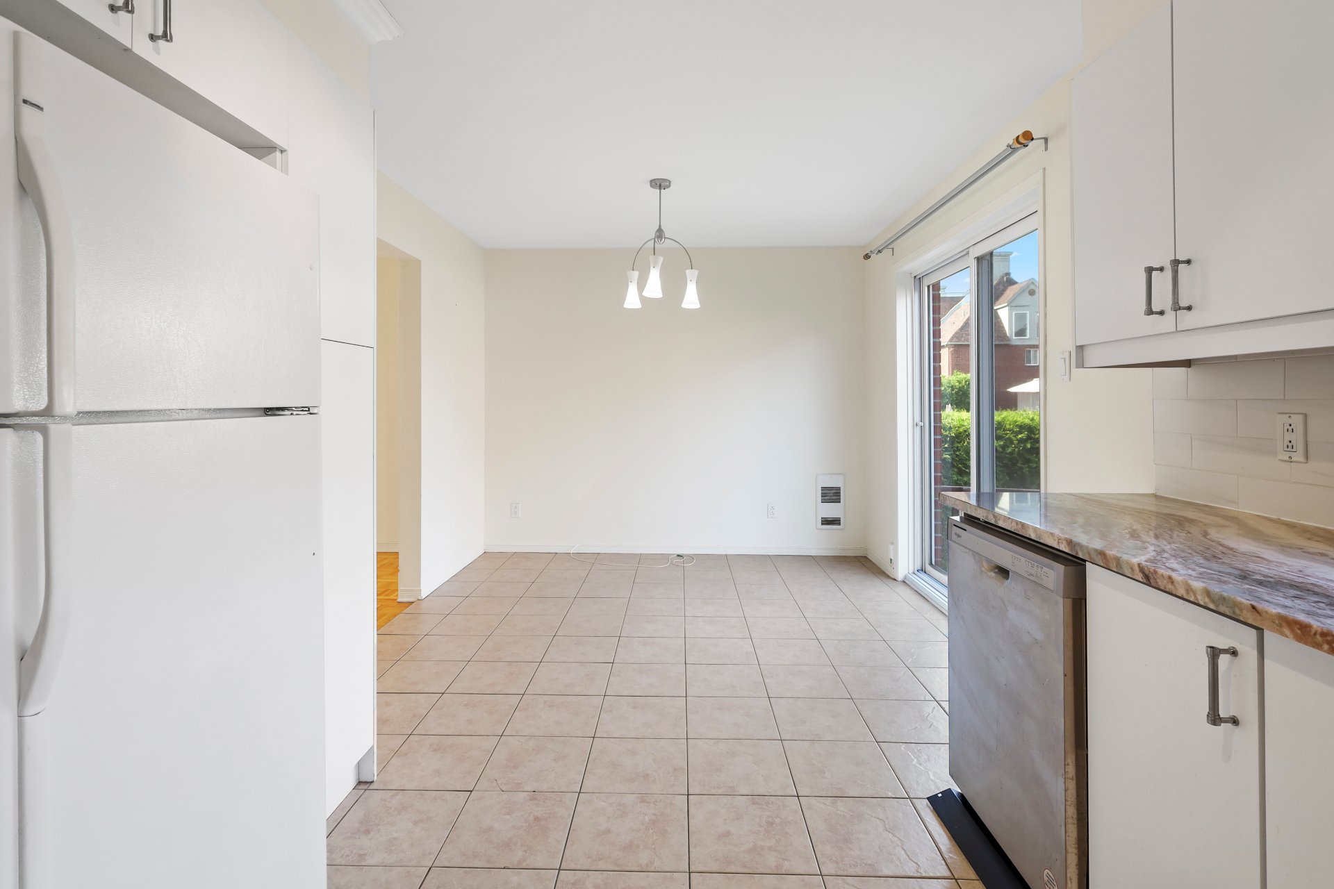 Spacious, centrally located end-unit townhome. Step into a ground-level vestibule leading up to a bright open-concept living and dining areas with parquet floors. The kitchen features granite countertops and is open to the dinette which has patio doors opening to your rear balcony and yard. Upstairs offers three bedrooms, including a large primary suite with a walk-in closet. The finished basement includes a full bathroom, separate laundry room, a spacious playroom, and direct access to the backyard. Roof re-shingled in 2019. A smart and stylish opportunity!