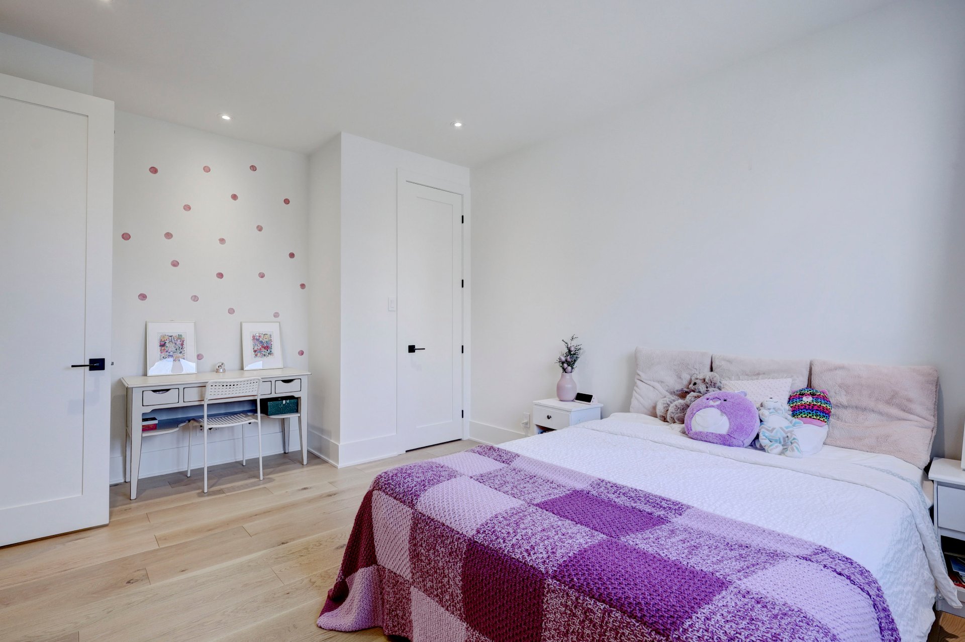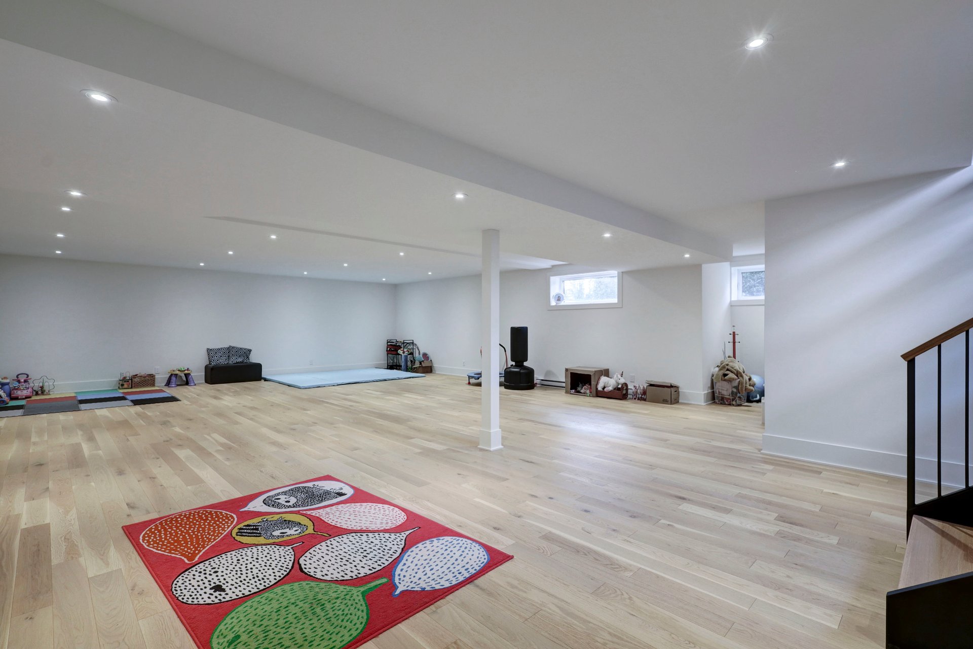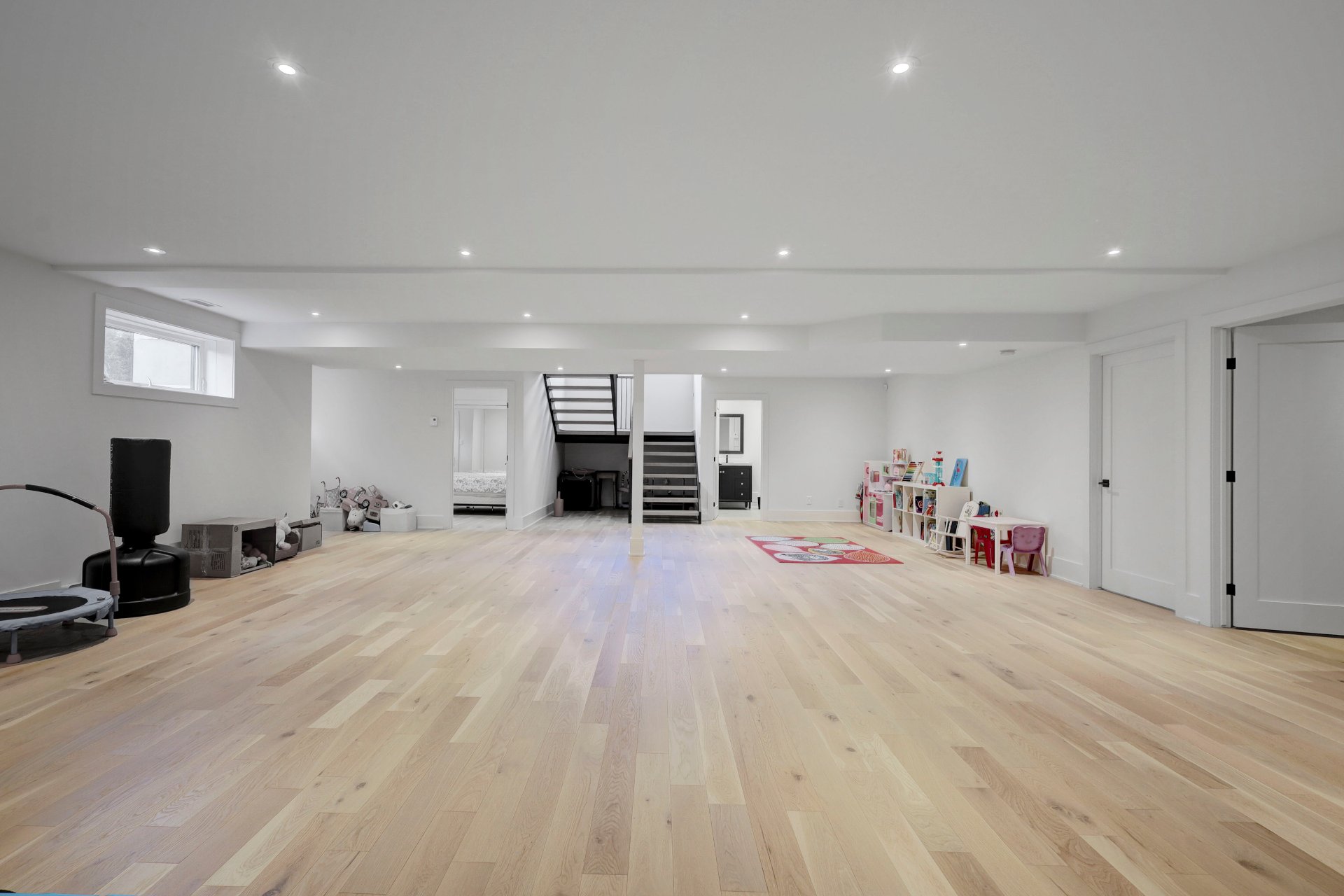 The finished basement offers a spacious playroom, two additional bedrooms, ample storage, and a full bathroom.
