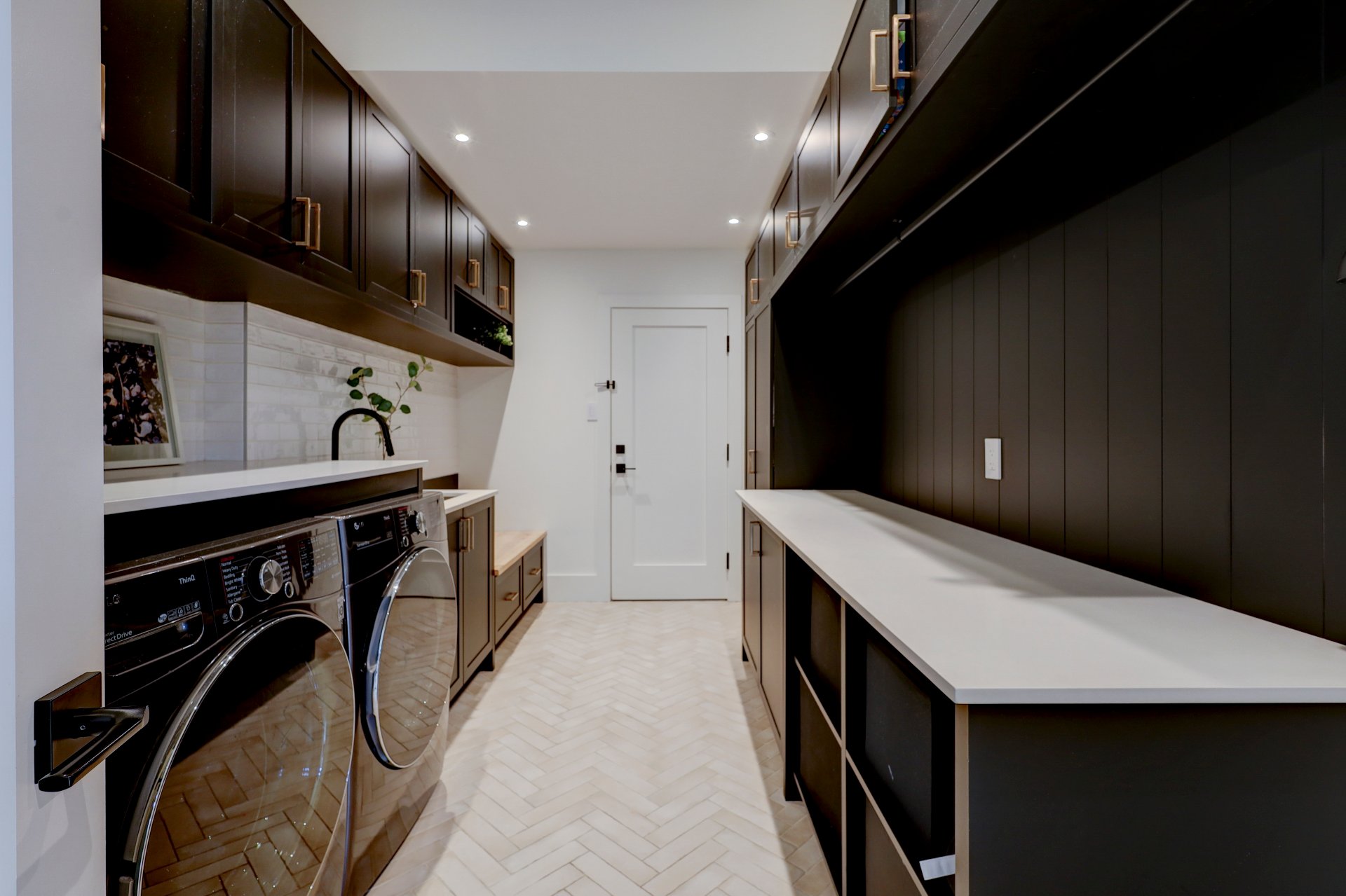 The main level also includes a large laundry room with access to the mudroom and double garage with epoxy floors, as well as a versatile den ideal for a home office.