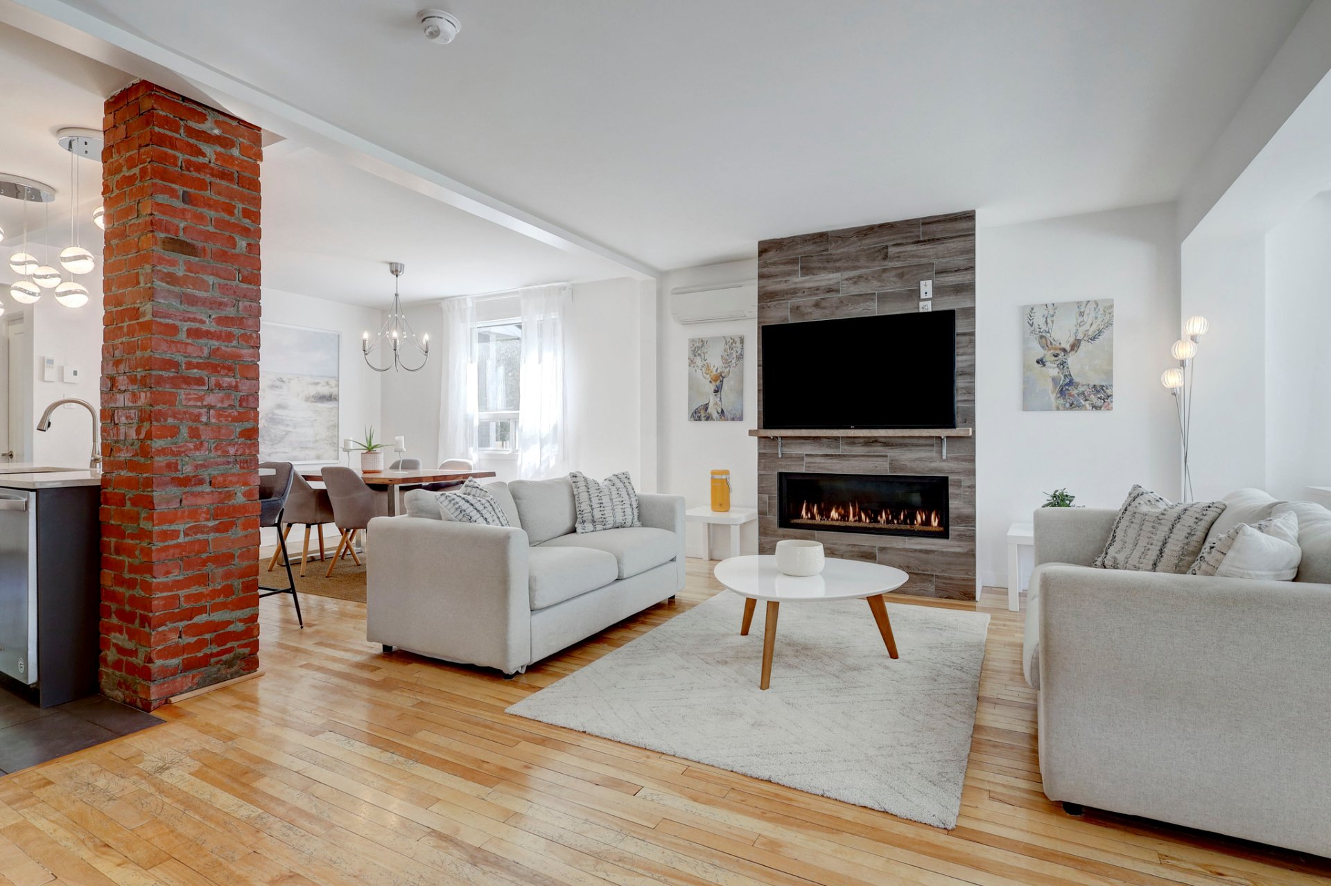The inviting living room features a cozy gas fireplace -- ideal for curling up on crisp Fall and Winter evenings.