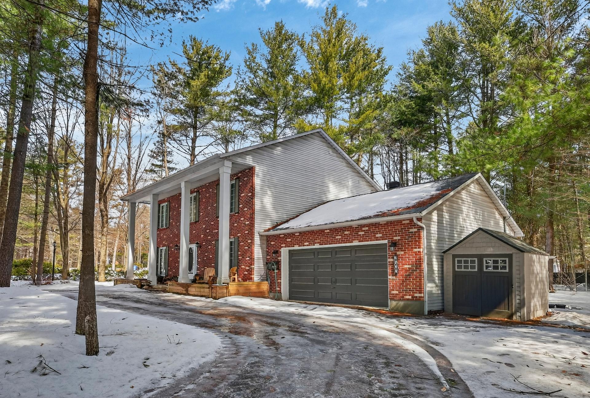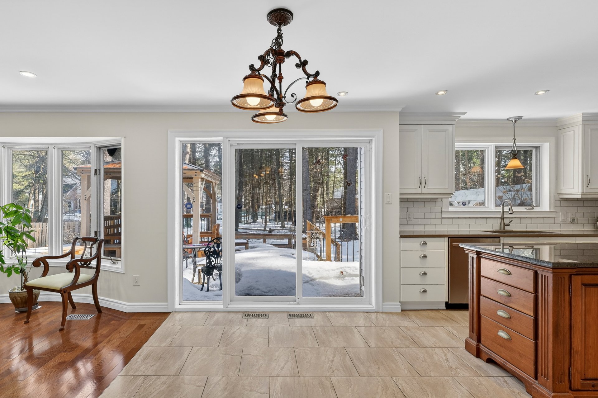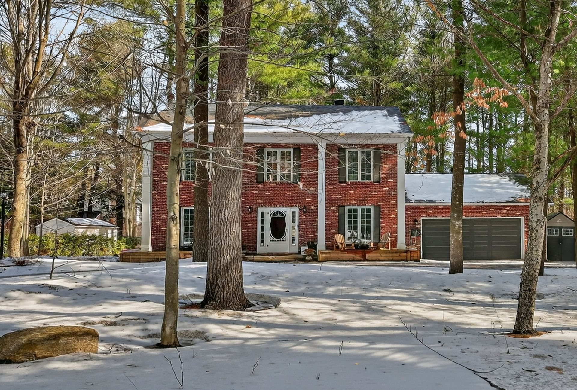 Beautiful Georgian-style home on a quiet crescent. Classic cross-hall layout, renovated kitchen with quartz counters open to the dinette and family room. Inviting main floor family room with exposed brick wall and fireplace. Dinette with patio doors to a private yard with deck and serene trellis area. Upstairs offers a spacious primary suite with walk-in closet and ensuite with jacuzzi tub and separate shower, plus two additional bedrooms and full bath. Unfinished basement with direct access to the double garage. Roof reshingled in 2024 , furnace and heat pump 2019.