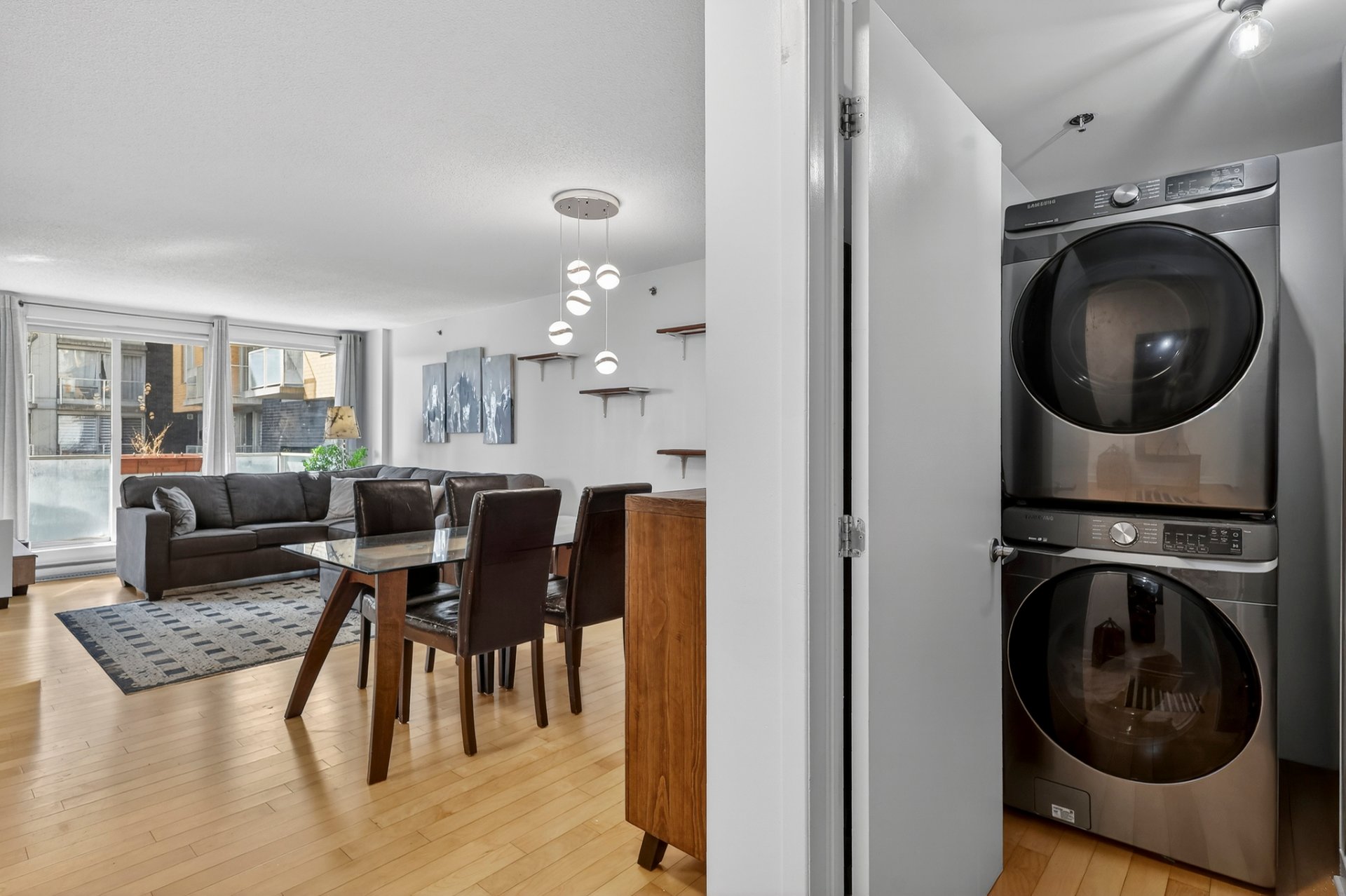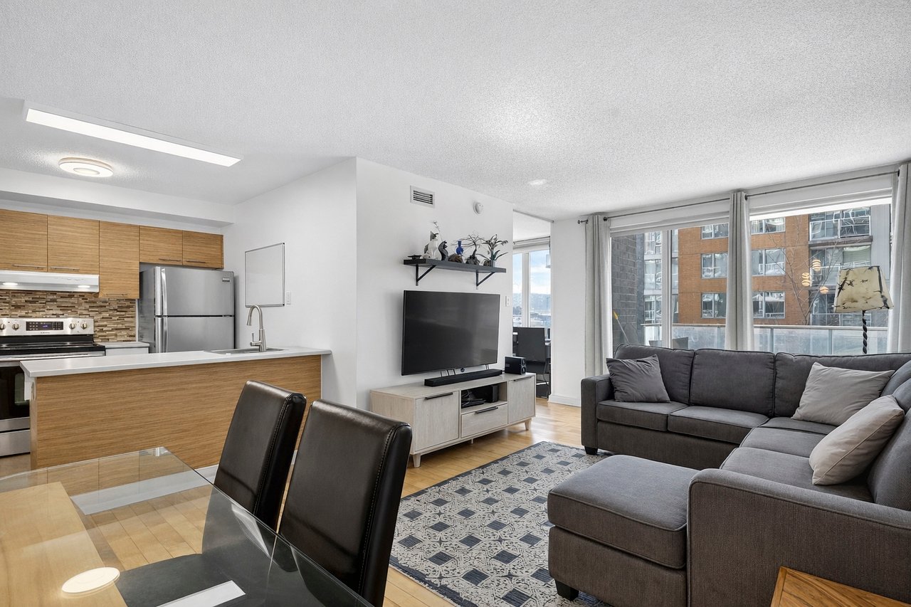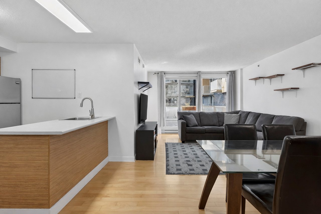 Welcome to Apartment 226 at the Phoenix in Ville Saint-Laurent! This modern open-concept unit features 1 bedroom and 1 bathroom with separate shower and tub. Enjoy a private balcony for sunny days, plus the convenience of indoor parking and a storage locker. Ideally located steps from the REM, public transit, and with quick access to Highways 15, 40, and 13, as well as nearby shops and services, making everyday living effortless. Whether you're looking for a comfortable home or a smart investment opportunity, this property is not to be missed!
