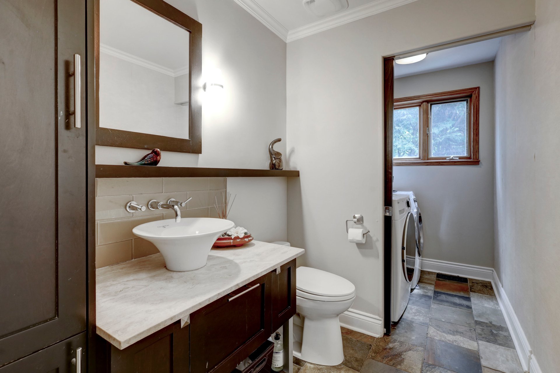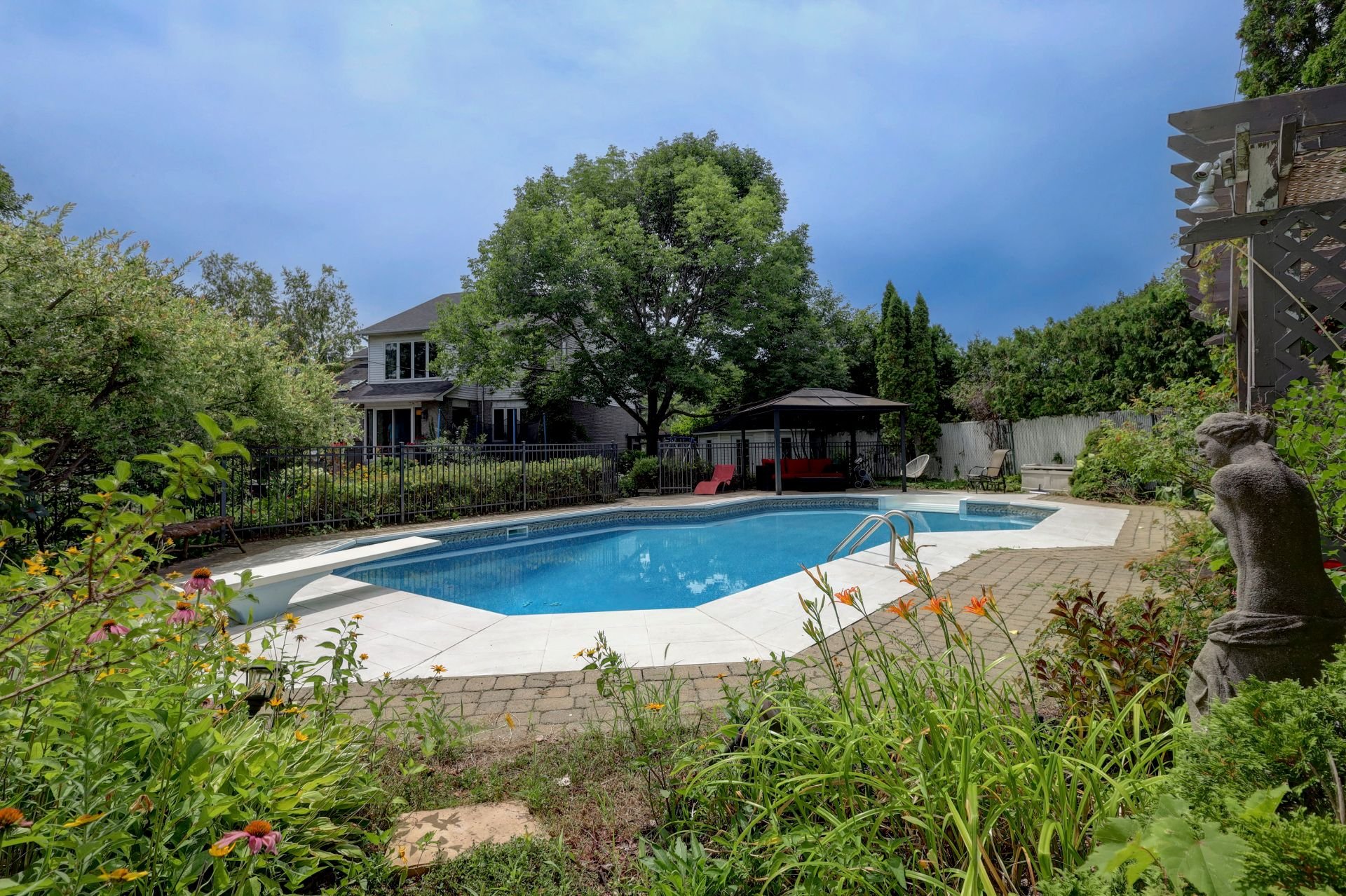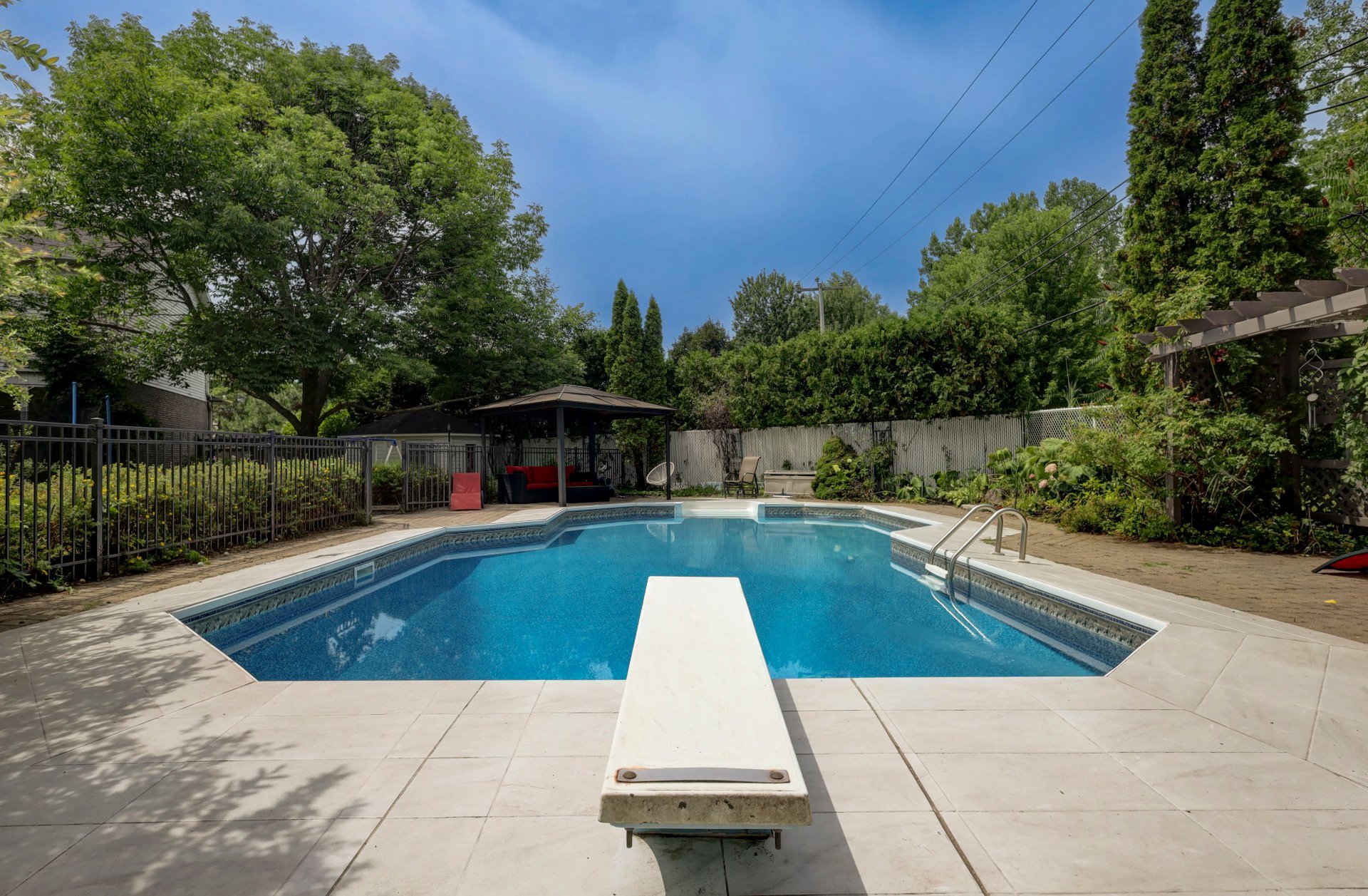 The open-concept main floor with a dinette, family room, and a powder room with laundry, along with direct access to a private backyard. Enjoy a saltwater in-ground pool-perfect for relaxing or entertaining--plus a walkout deck for summer gatherings.